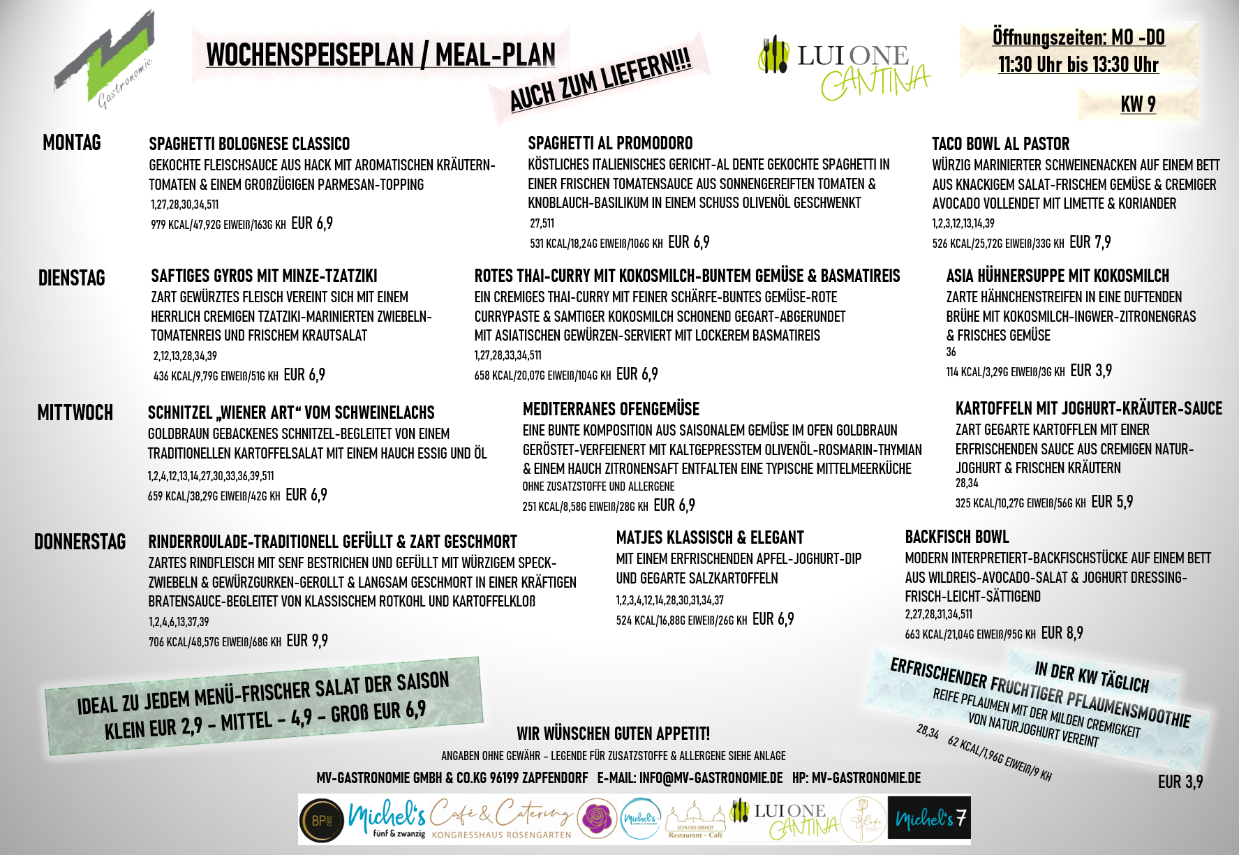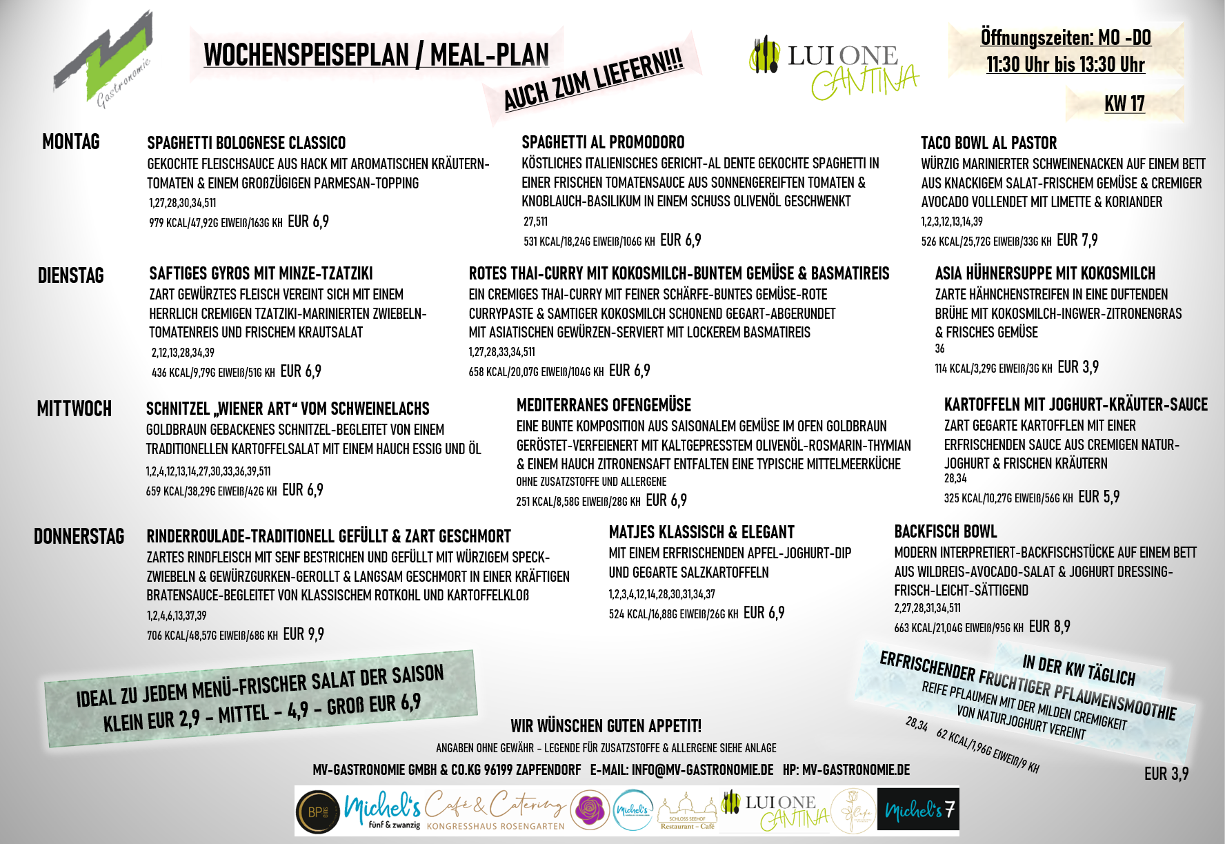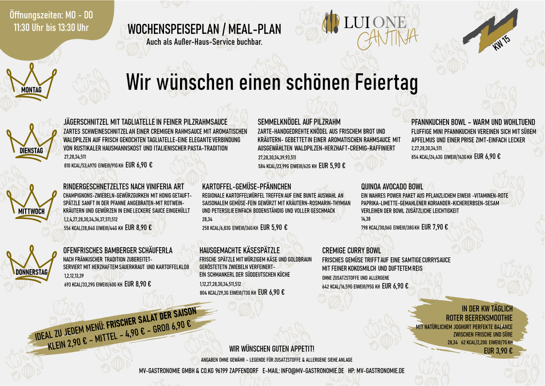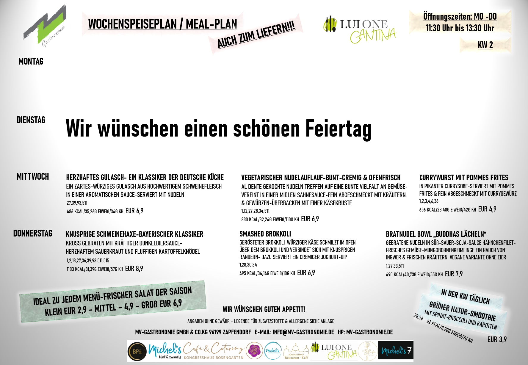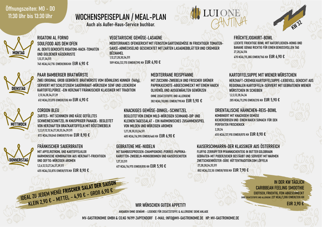 MONTAG BIS DONNERSTAG MITTAGSTISCH VON 11:30 UHR BIS 13:30 UHR