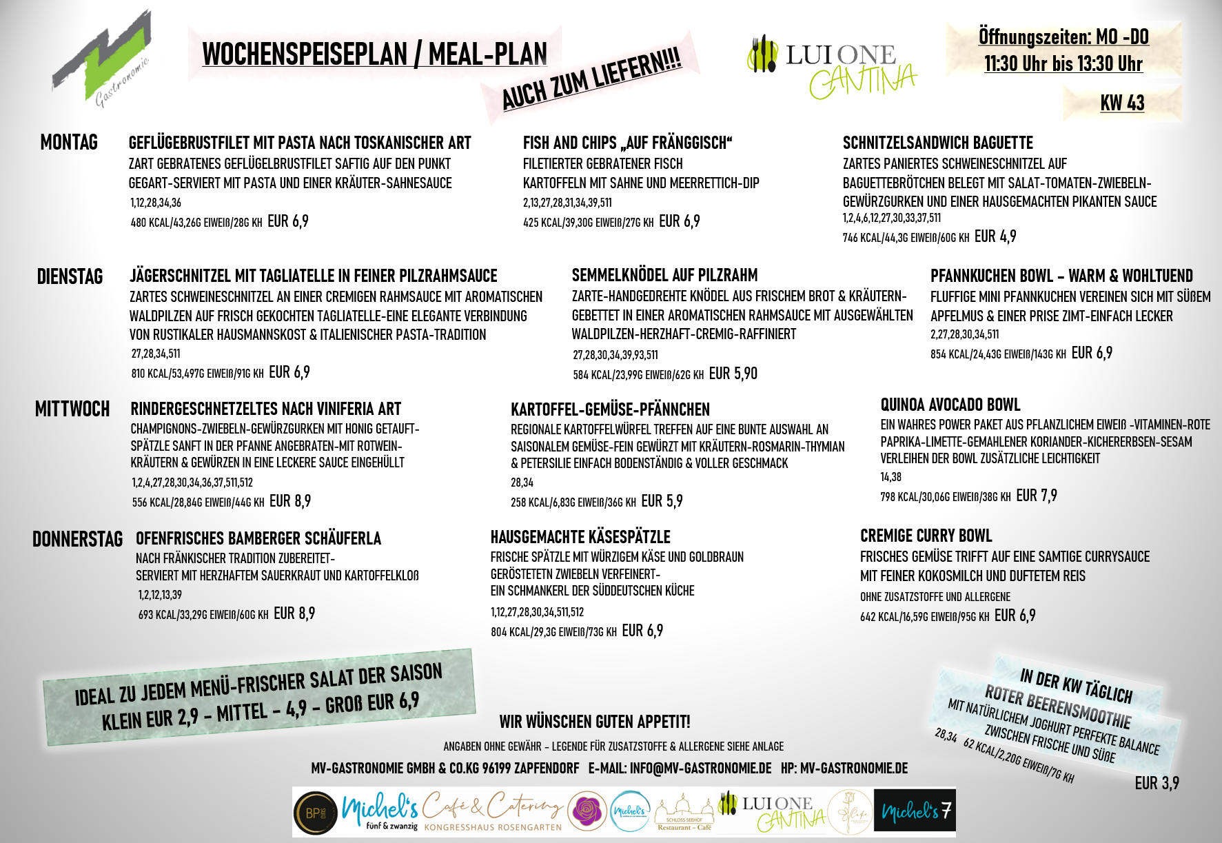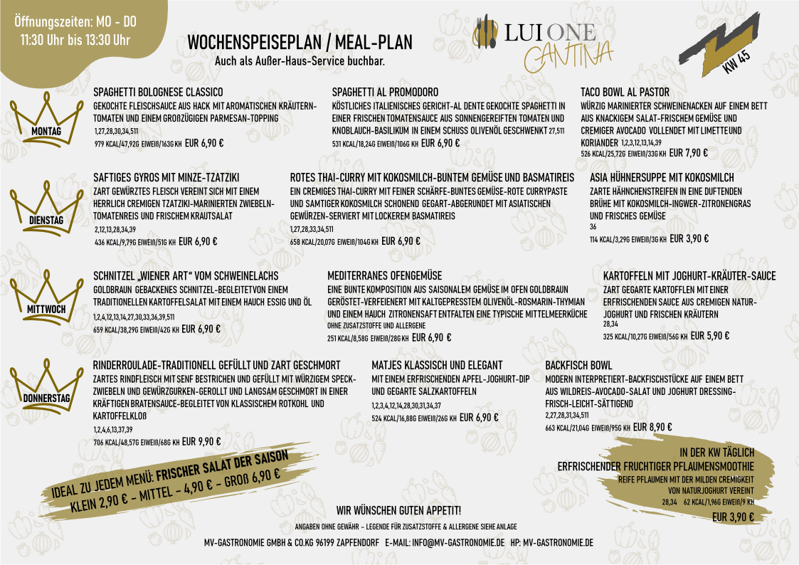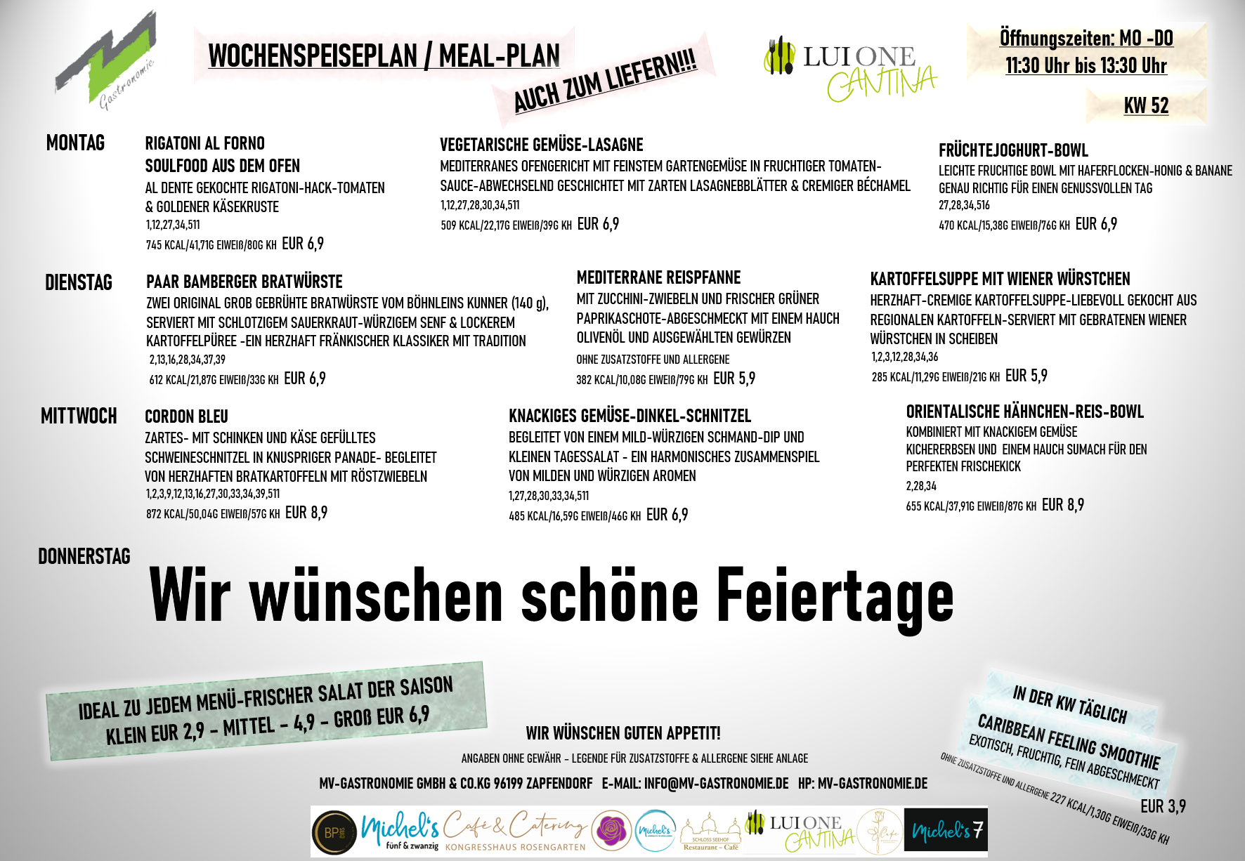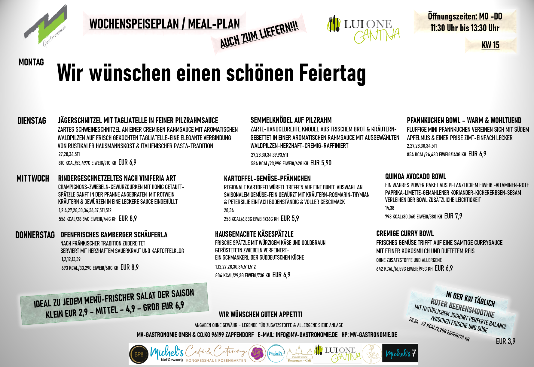 MONTAG BIS DONNERSTAG MITTAGSTISCH VON 11:30 UHR BIS 13:30 UHR