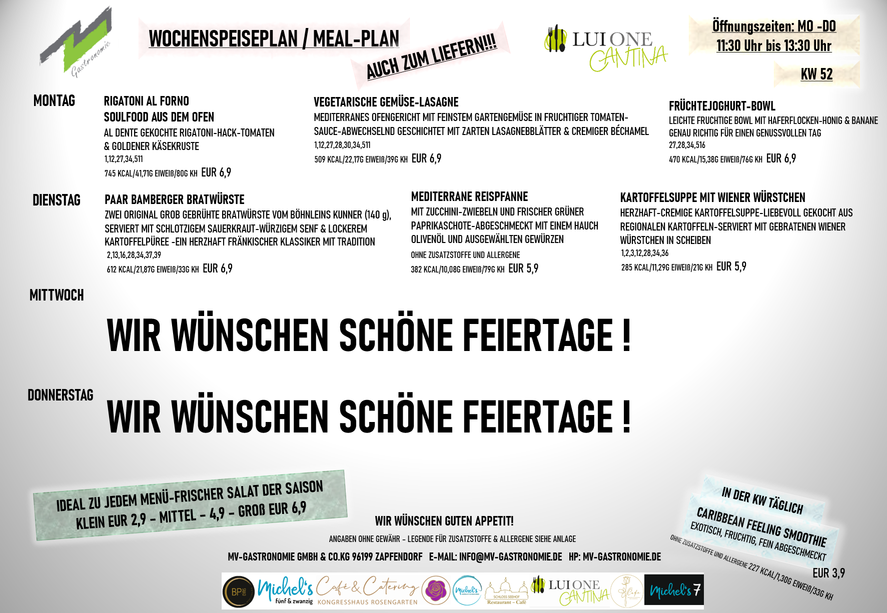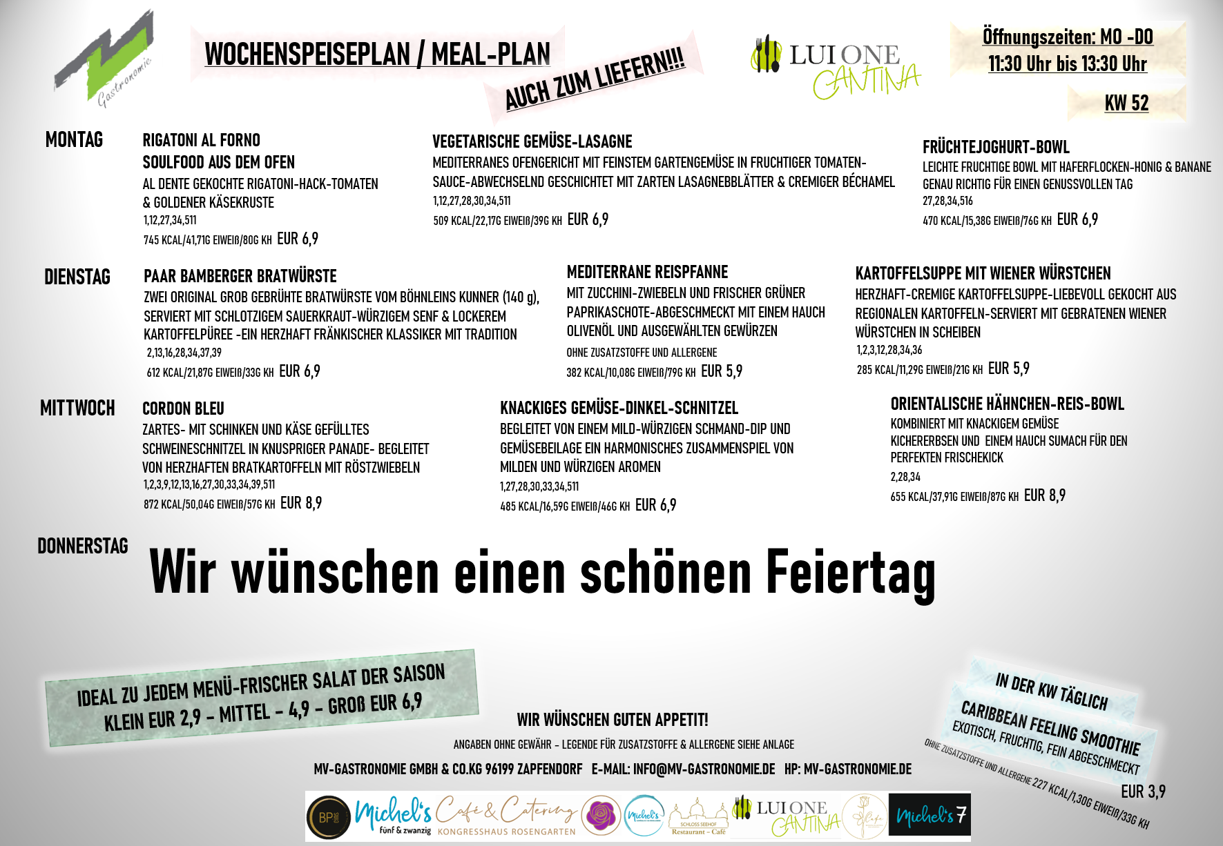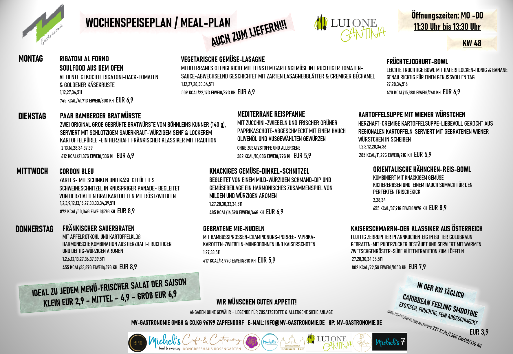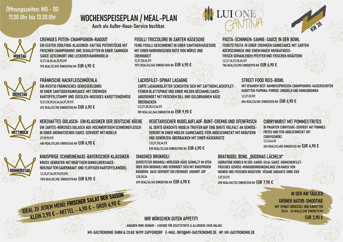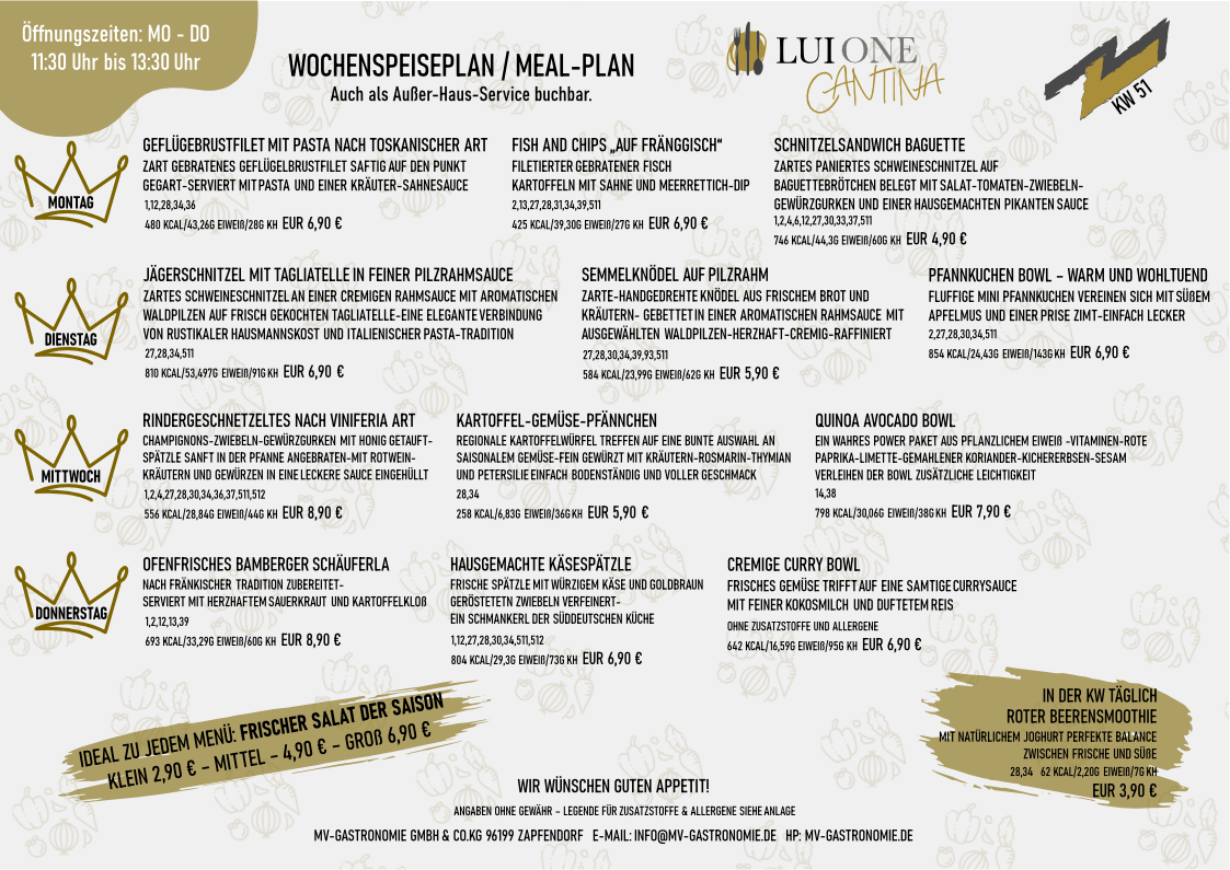 MONTAG BIS DONNERSTAG MITTAGSTISCH VON 11:30 UHR BIS 13:30 UHR